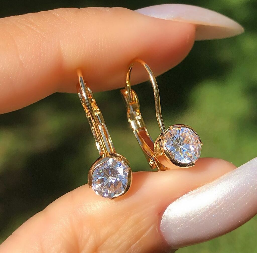 Brinco fecho gancho com ponto de luz, medindo 1cm de largura x 1,5cm de altura (6635)