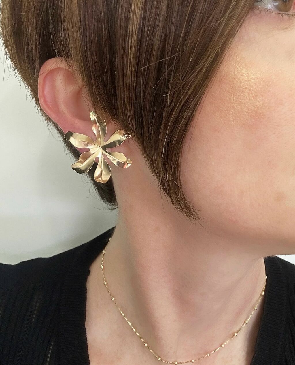 Brinco Flor Pétalas medindo 3,8cm de diametro aproximadamente.