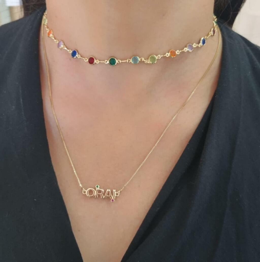 4218 Choker: medindo 35+5cm extensor (regulável) com pedrinhas redondinhas 3mm aproximadamente em cores vibrantes