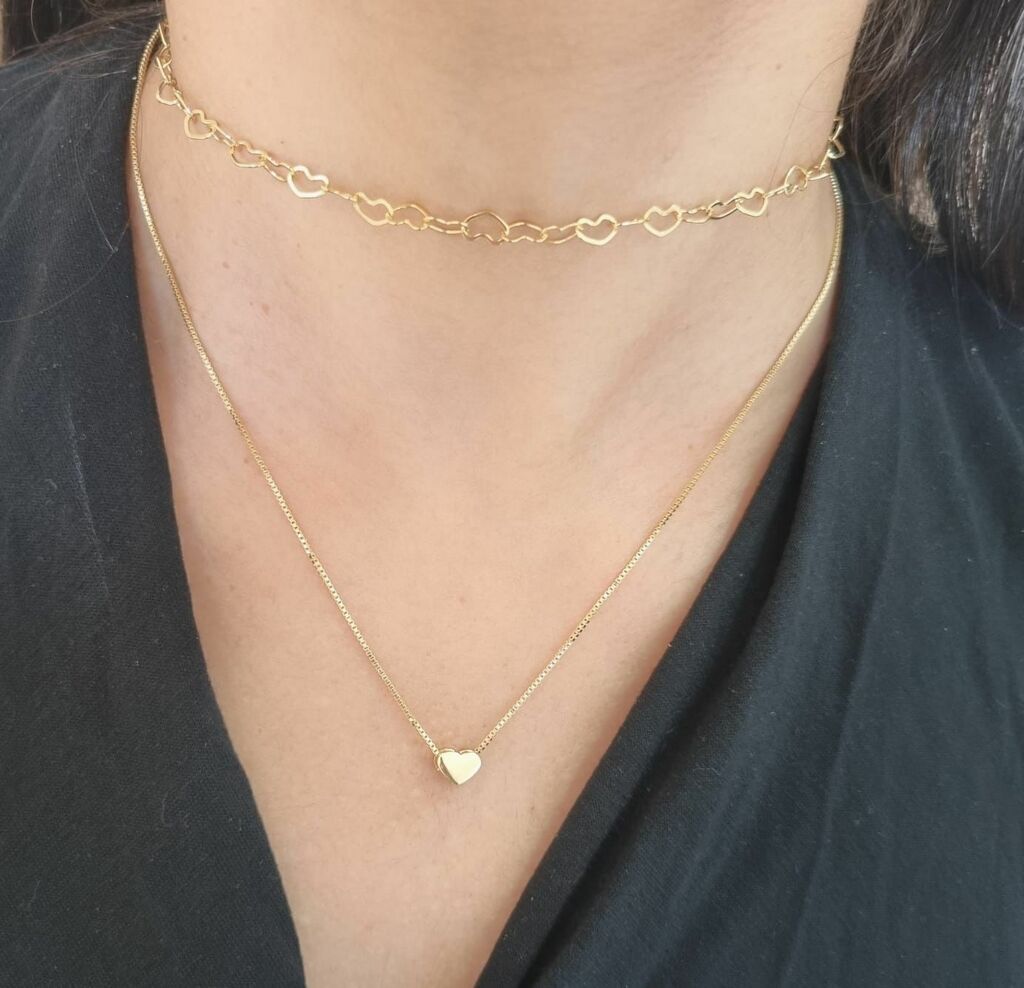Chokers corações entrelaçados medindo 35cm com mais 5cm de extensor regulável (3107)