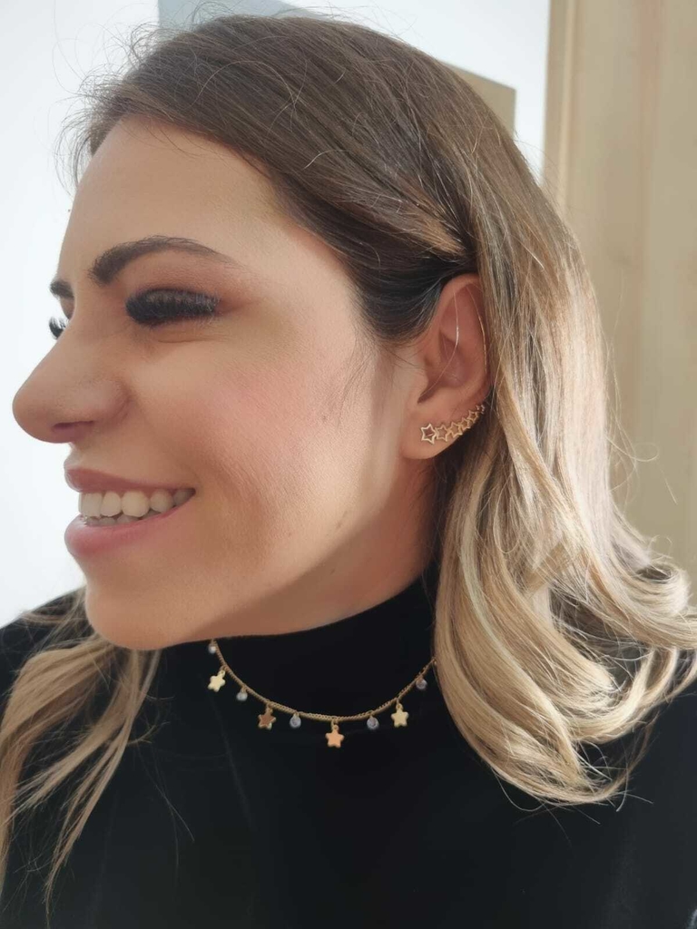 8252 Choker: medindo 24cm de comprimento com mais 10cm de extensor regulável possui 8 estrelas de 7mm aproximadamente cada uma e 6 pontos de luz em zircônia cristal