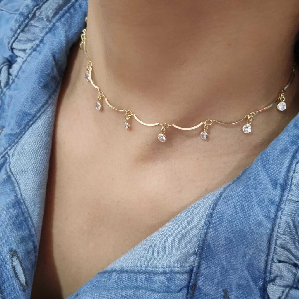 Choker é um acessório estiloso capaz de transmitir modernidade e elegância. Os acessórios que compõem seu look são extremamente importantes para dar aquele toque especial na finalização. Se você é daquelas que gosta de fazer composições de colares com tamanhos diferentes pode usar essa choker para fazer a finalização do mix.