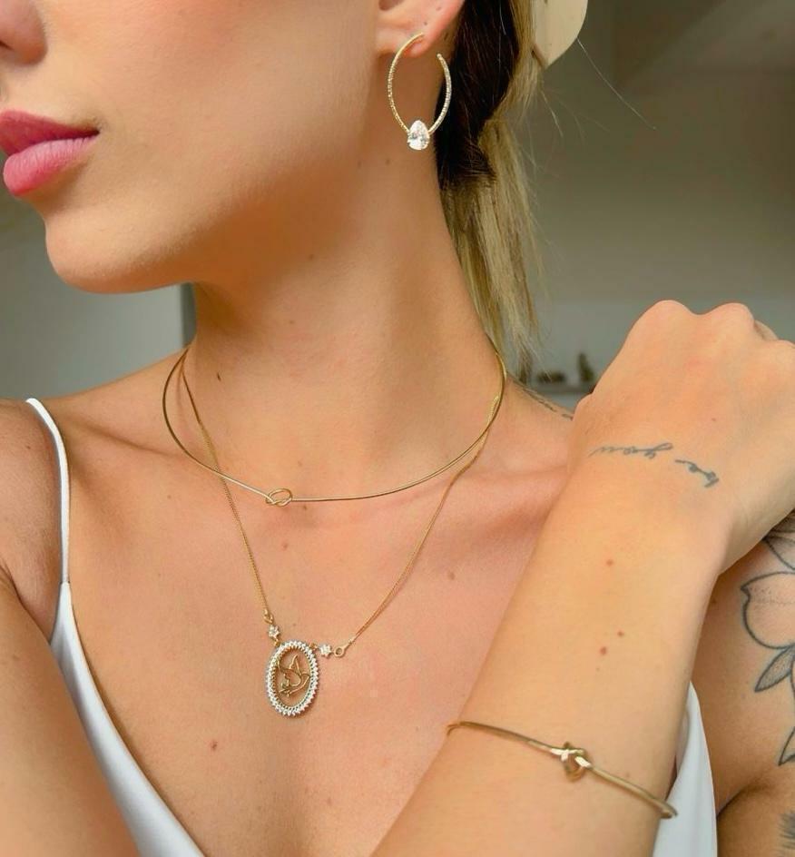 6980 Gargantilha: corrente medindo 45cm de comprimento com pingente oval Espírito Santo medindo 2cm de altura com detalhes em zircônia cristal