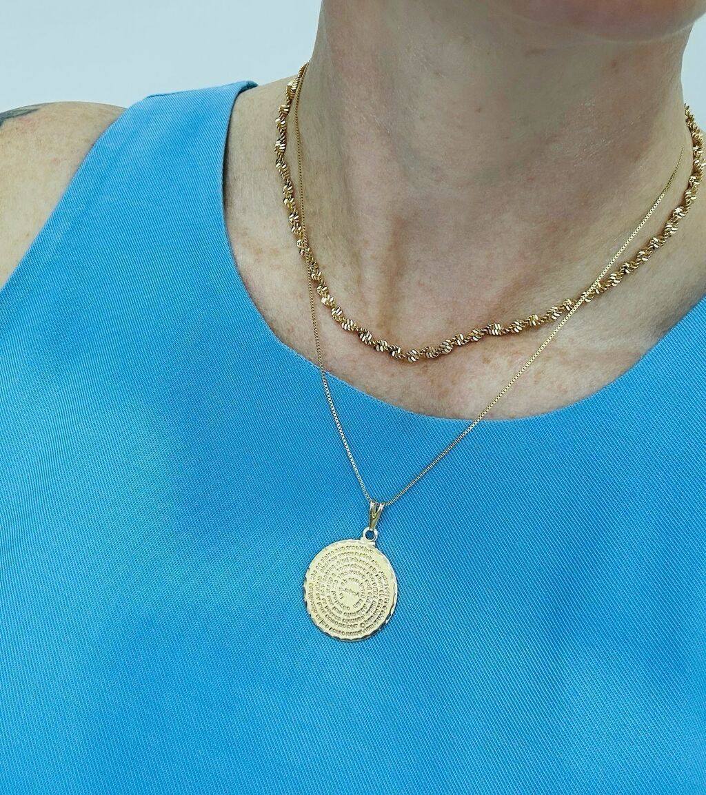 7585 Gargantilha: corrente medindo 45cm de comprimento com medalha contendo a oração Pai Nosso medindo 2,5cm de diametro