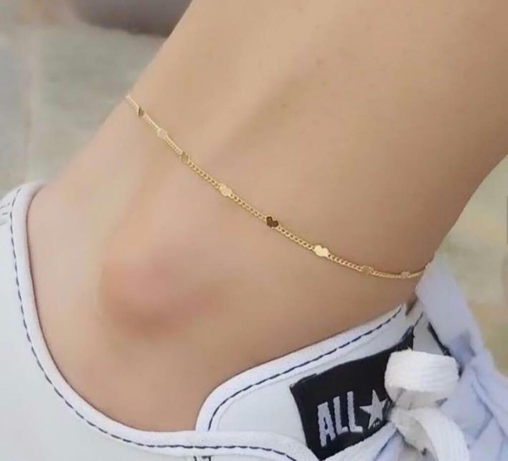 6704 Tornozeleira: com detalhe pequenos corações medindo 25cm+5cm de extensor (regulável)